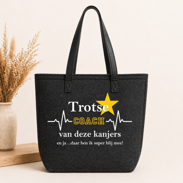 Coaches verdienen waardering. Met deze vilten tas geef je niet alleen een praktisch cadeau, maar ook een mooie boodschap die elke coach met trots zal dragen.